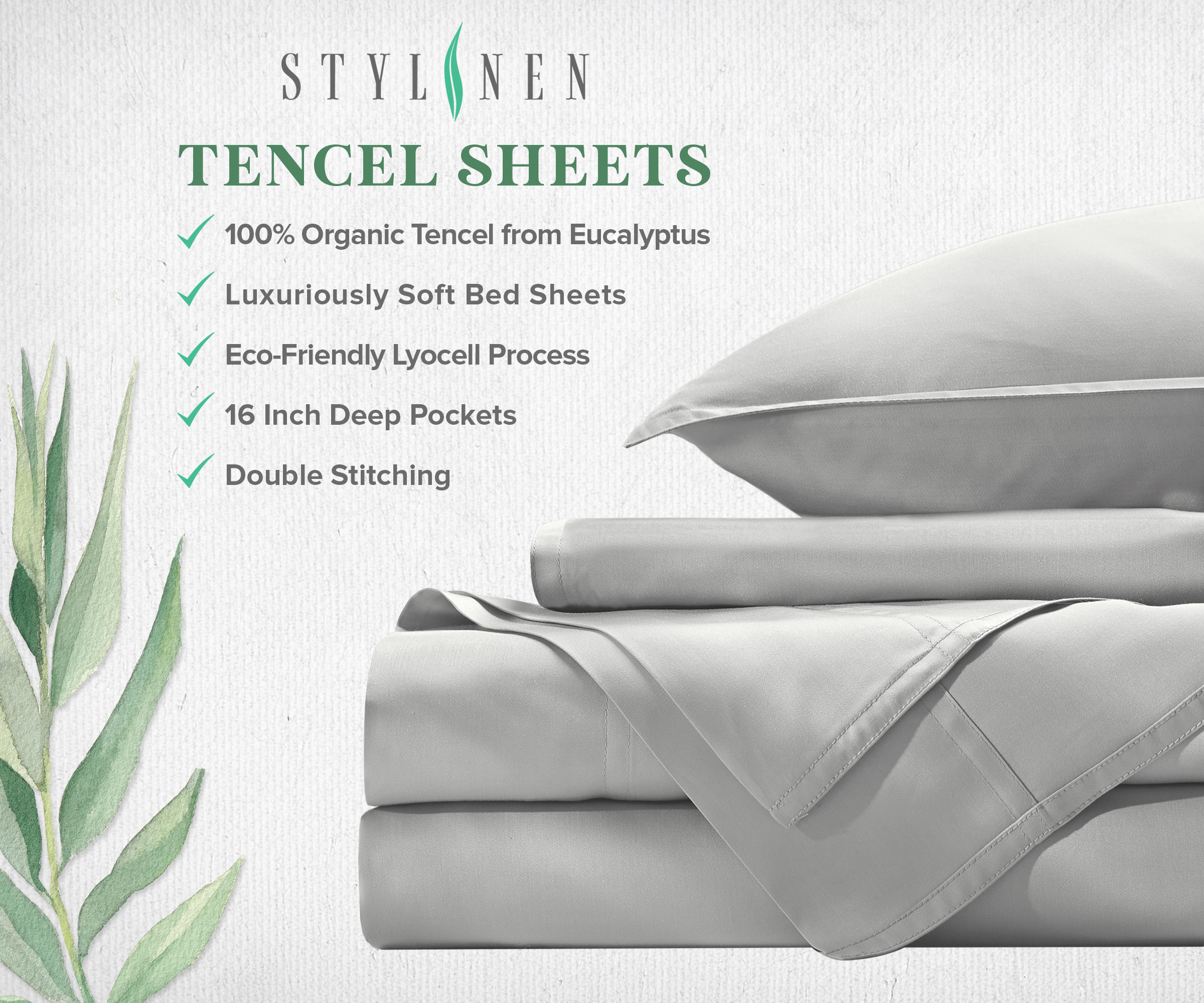 In addition to being crafted from 100% Organic Pure Eucalyptus Tencel, STYLINEN luxury Eucalyptus bed sheets are OEKO-TEX STANDARD 100 Certified and have been tested for over 100 harmful chemicals, ensuring that it is safe, healthy and environmentally friendly for you and your family. STYLINEN bedding products are never blended with other fibers or fabrics so you can rest assured that you are sleeping on the highest quality 100% Organic Pure Eucalyptus available.